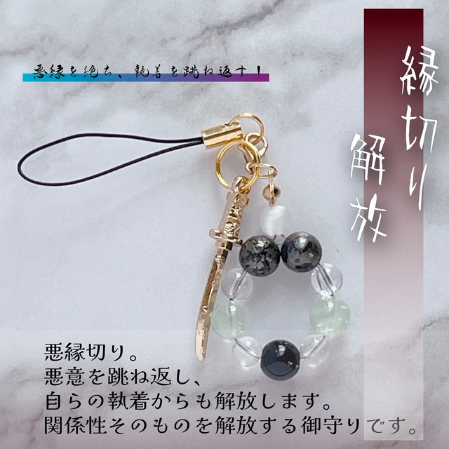 パワーストーンを使ったキーホルダーのお守りです。 外部からの邪気を遮断し跳ね返します。 感情を落ち着かせて、内外共に調和させます。 穏やかに縁を切れるように組んでおります。 ●キーホルダー・ストラップ部は変更可能ですのでオプションよりお選びください。 【ご購入後の流れ】 ・波動鑑定(無料版の簡易的なもの ※別途鑑定をご購入された方は別です。) ↓ ・お守り浄化 ↓ ・簡易鑑定結果を転写 ↓ ・祝詞・祈祷等 ↓ 梱包 ↓ 発送となります。 【転写する主な波動の内容】 ・簡易鑑定で得た情報。(無料版) ・マイナスやネガティブなエネルギーを解消。 ・高次元波動とソルフェジオ周波数。 ・祈祷等。 【商品内容】 ●サイズ:キーホルダー・ストラップ部分含め 約9cm前後。 ●使用パワーストーン: ・モリオン(黒水晶) 8mm / 最強の魔除け・厄除け・邪気払い・悪霊払い・事態を好転させる・不運を寄せつけないetc. ・アメジスト(紫水晶) 8mm / 2月の誕生石・恋愛成就・冷静・真実を見抜く・誠実・霊性の高い石・マイナスをプラスに変える・人間関係・癒し・愛の守護石etc. ・ブルーレース 6mm / 神の石・深く優しい癒し・人間関係・友情・清らかな愛情・心の中和・リラックス・冷静etc. ・ローズクォーツ 6mm / 縁結び・恋愛成就・結婚運・美容・癒し・優しさ・思いやり・真実の愛・愛の女神の石etc. ・天然水晶 4mm / 強力な浄化・厄除け・開運・純粋・万能効果・増幅etc. ●刀チャーム 【プレゼント】 ●波動の塩 約40g。 ●セージの葉。 【合わせて購入ご希望の方】 ●リーディング(波動鑑定)も合わせてご希望の方は+2000円にて承ります。 (結果に出たものを修正した波動を転写いたします。) ●タロット鑑定 +2,000円。 【 追加購入にてリーディングをお選びの方】 ご希望の方は、下記項目をお取引のメッセージや備考欄よりお知らせください。 ※波動鑑定のみの場合はご記入不要です。 ※いただいた情報はリーディングのみに使用いたします。 ●お名前 (フリガナもお願いします。) ※鑑定ご希望の方がご購入様ご本人である場合はフリガナのみお願いします。 ●生年月日 ●お悩みや上げたい運気、何か気になることなどございましたらお知らせください。