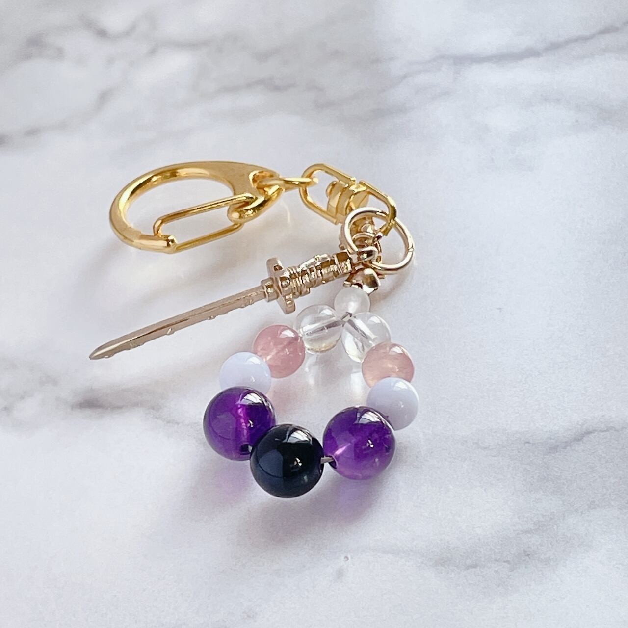 パワーストーンを使ったキーホルダーのお守りです。